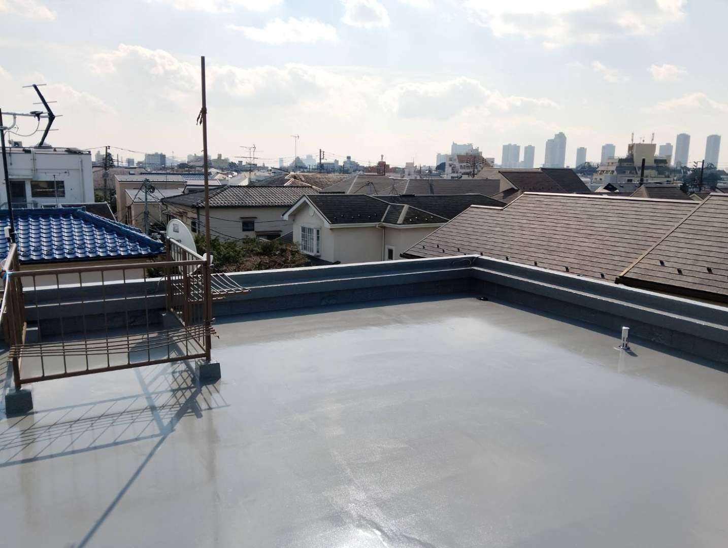 New 戸建て 防水工事 雨漏れの心配いらずな防水工事 経年劣化による雨水や湿気を防げるのが防水工事です。建物の寿命を延ばし資産価値を維持する為にとても大切な工事。雨漏りや湿気はカビやダニの発生原因にもなりますので、10~15年ごとの定期的なメンテナンスがおすすめです。 施工前 施工前 施工中 施工中 施工中 施工後 場所 東京都大田区 前の施工事例 マンション・アパート モダン和風なリノベーション:渋谷区N邸 1 / 1